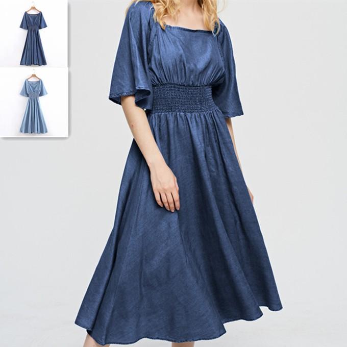 楽天市場 デニムマキシワンピース ロング丈デニムワンピース マキシ丈 デニムワンピース デニム ワンピース ロング丈 マキシ 五分袖 春 夏 秋 エコライフショップ